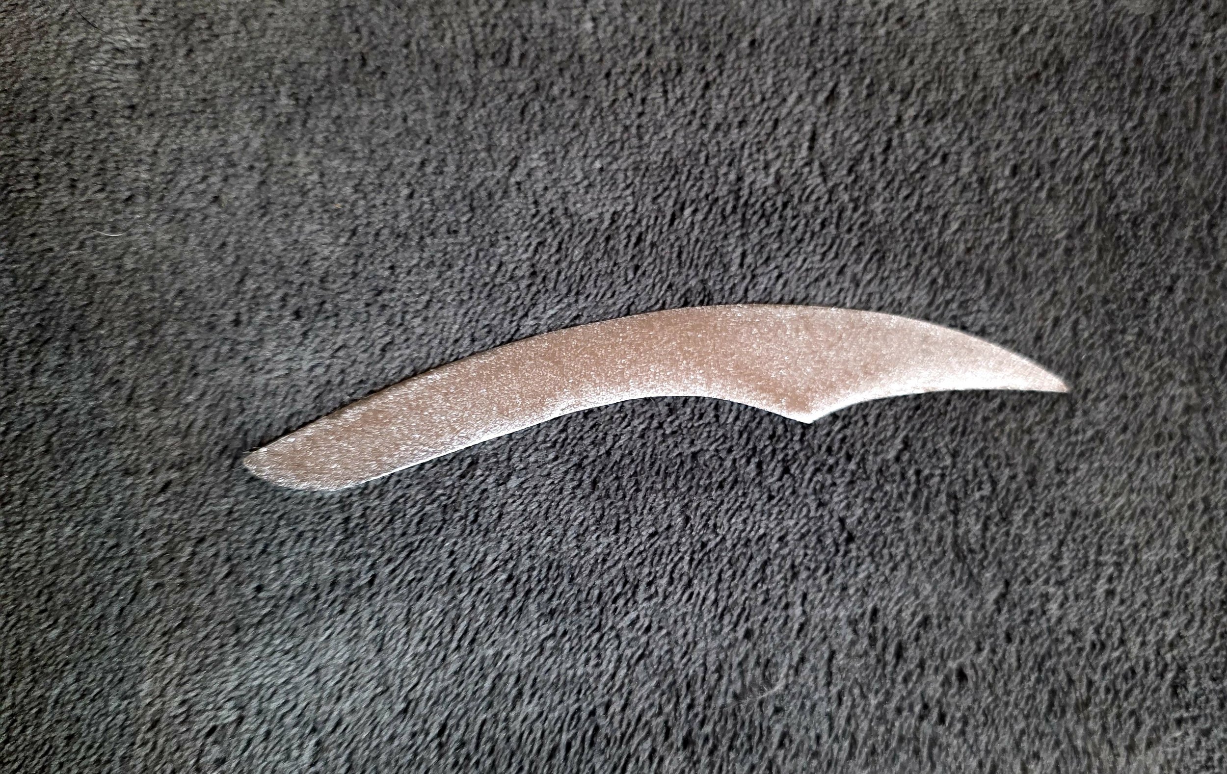I cut this from a water heater jacket. Mild steel, headed for the trash, given a second life. My first piece ever. Made for my sister because my family has always been horse people and because Sean Guerrero made me believe you could make something real with just raw material and your hands.