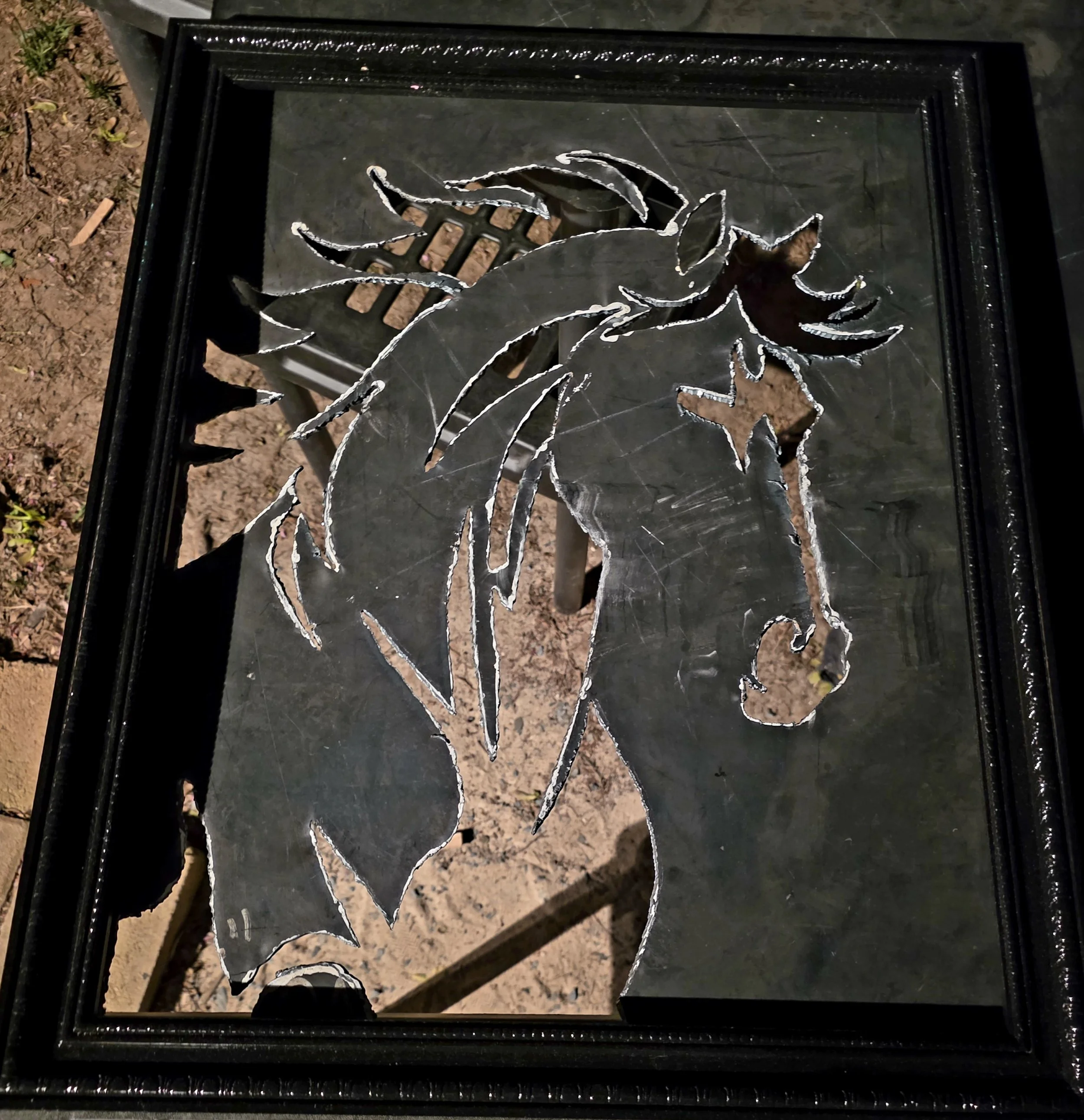 No. 3 — Torch burnt steel horse. The fire is in the metal. What's behind it is up to you.